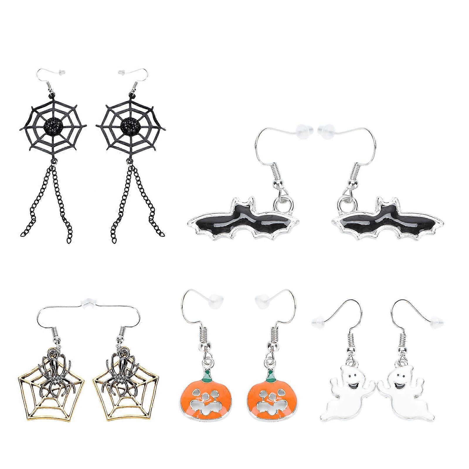 Halloween Dangle Earrings 5 Pairs Alloy Ear Jewelry Daily Wearing Costume Parties Assorted Color Dress Up