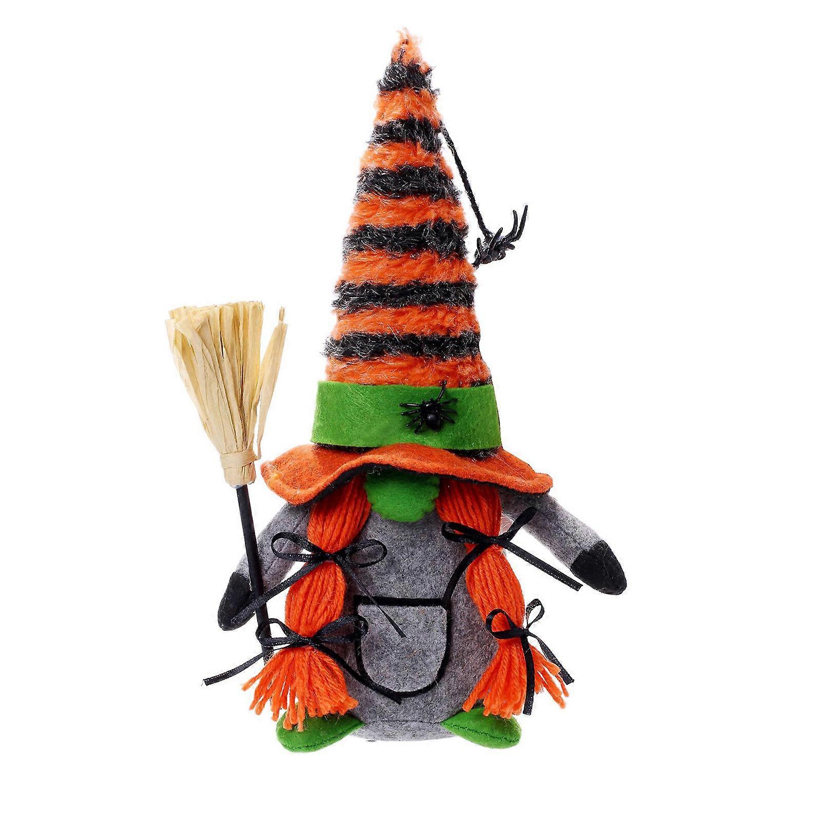 Halloween Gnome Broom Spider Stuffed Plush Gnomes Ornament Decor