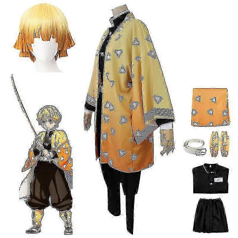Halloween Party Demon Slayer Agatsuma Zenitsu Cosplay Party Costume Outfits Anime Set Gifts