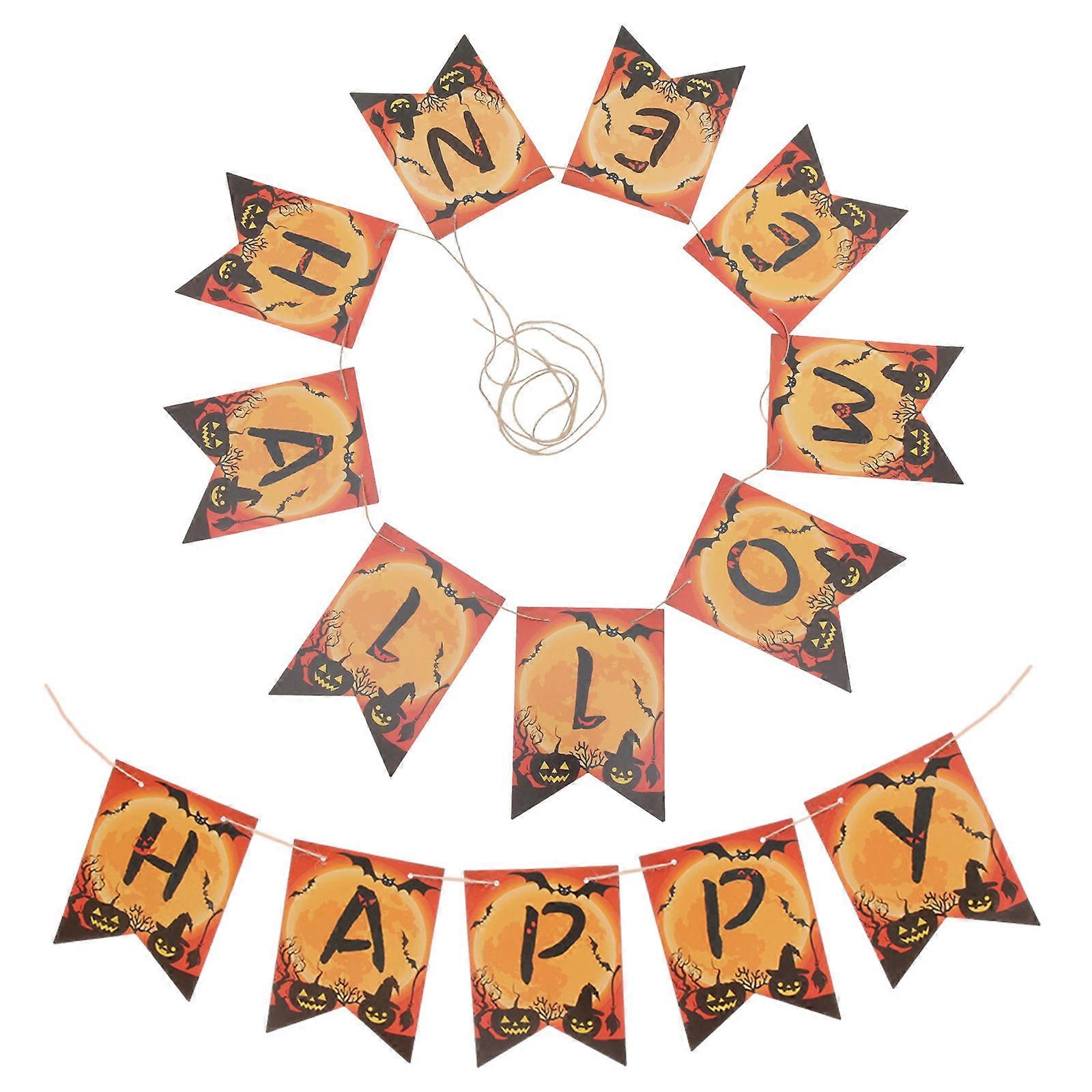 Halloween Bunting Indoor Hanging Banner Party Background Decoration Paper Triangle Flags For Halloween Party 1 Set