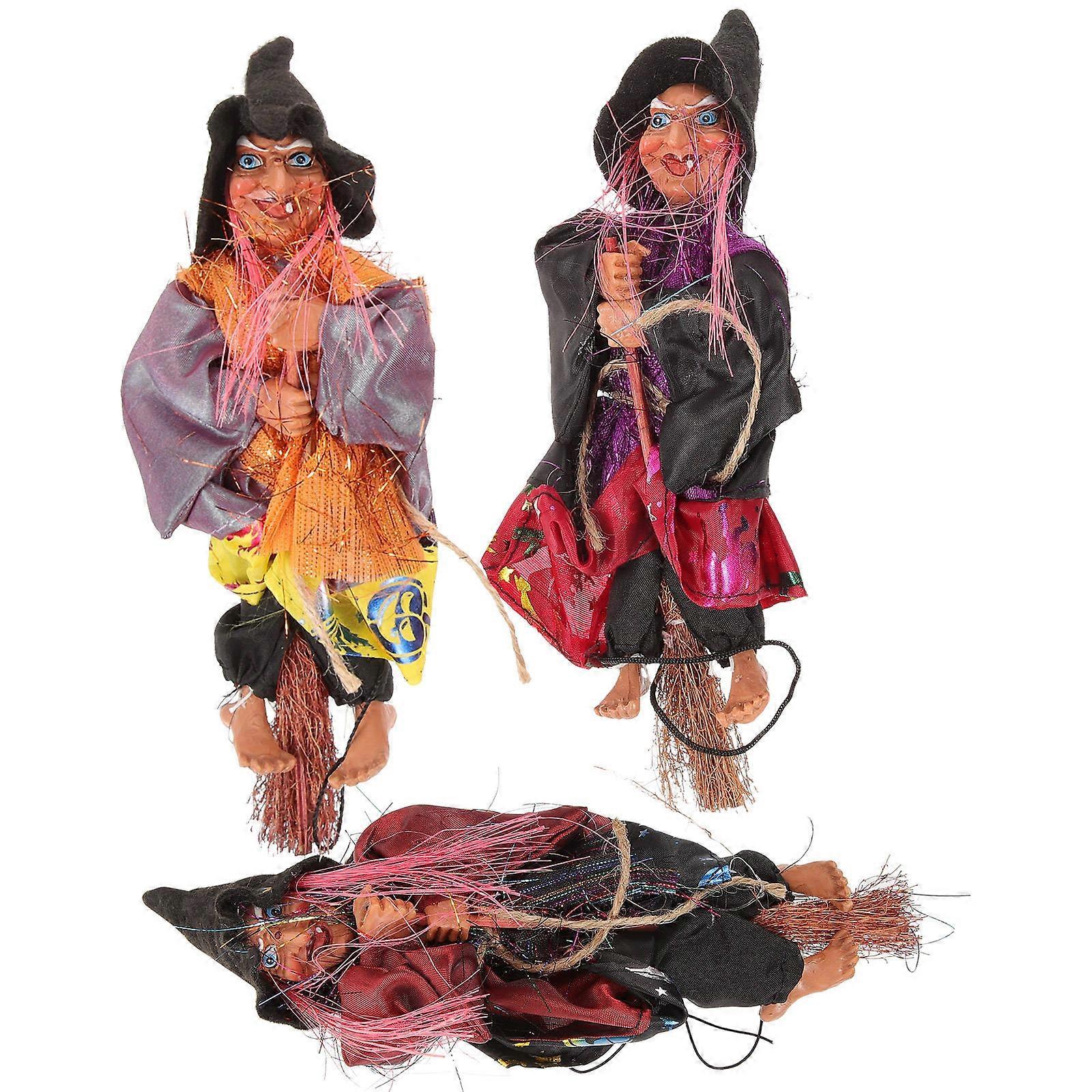 Halloween Witch Adornment Witch Broom for Decor 3Pcs Assorted Color