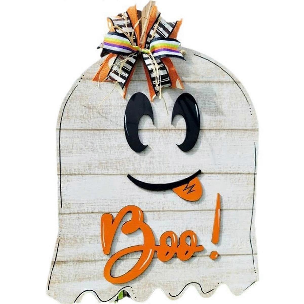 Charming Halloween Appeal: Adorn your entryway with this wooden Halloween door sign featuring the playful "Boo" ghost, a stylish ghost-striped ribbon, and vibrant green artificial leaves. and Eye-Catching: Crafted from solid wood, this Halloween door hanger is built to last beyond the season. Versatile Halloween Decoration: Perfect for enhancing your home's seasonal decor, this welcome sign can be displayed on your front or back door, walls of your living room or bedroom, or even propped on a shelf. Thoughtful Seasonal Gift: Looking for a gift that screams Halloween? This ghost-themed welcome sign is an excellent choice for housewarming, Thanksgiving, or as a special treat for friends and family who love decorating for the holidays. Complete Your Halloween Setup: Pair this adorable ghost sign with other Halloween decorations to create a cohesive theme for parties, trick-or-treating events, or any spooky gathering. Color:As Shown Material:Wood Package Contents: 1 * Halloween Ghost Welcome Sign Only the above package content, other products are not included. Note: Light reflection and different displays may cause the color of the item in the picture a little different from the real thing. The measurement allowed error is +/- 1-3cm.