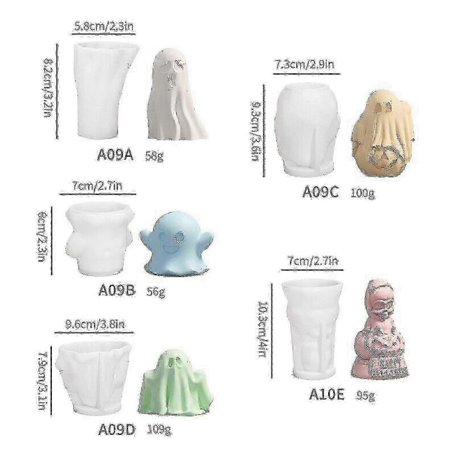 Halloween Ghost Candle Molds, 3D Pumpkin Skull Silicone Molds, Skeleton Soap Molds, for Candle Making Wax Aromatherapy DIY