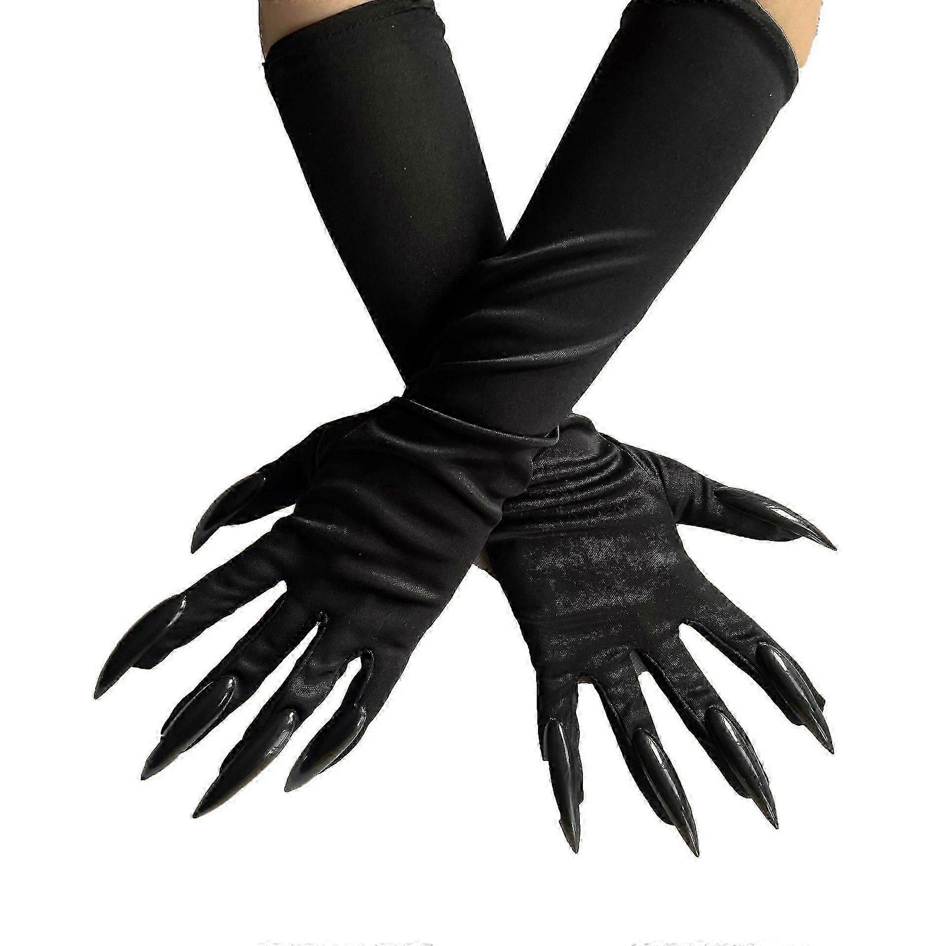 Halloween Paw Gloves Long Fingernails Black Party Gloves Cat Claws Halloween Prop Claws Glove Cosplay Costume Accessories(1 Pair, Black)