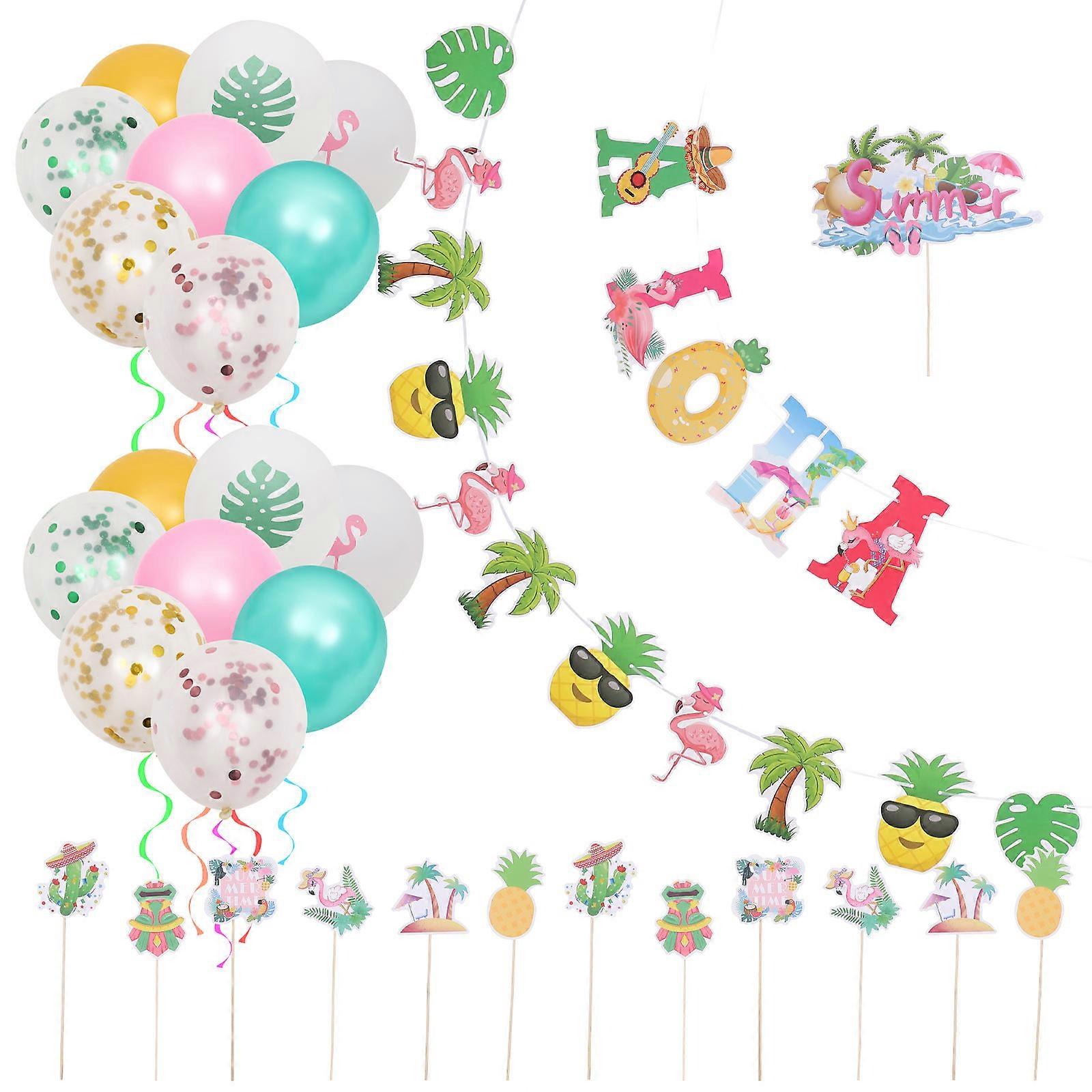 Hawaii Theme Party Supplies Set Banner, Balloons & Cake Topper for Birthdays, Celebrations & Photo Booth Backdrops