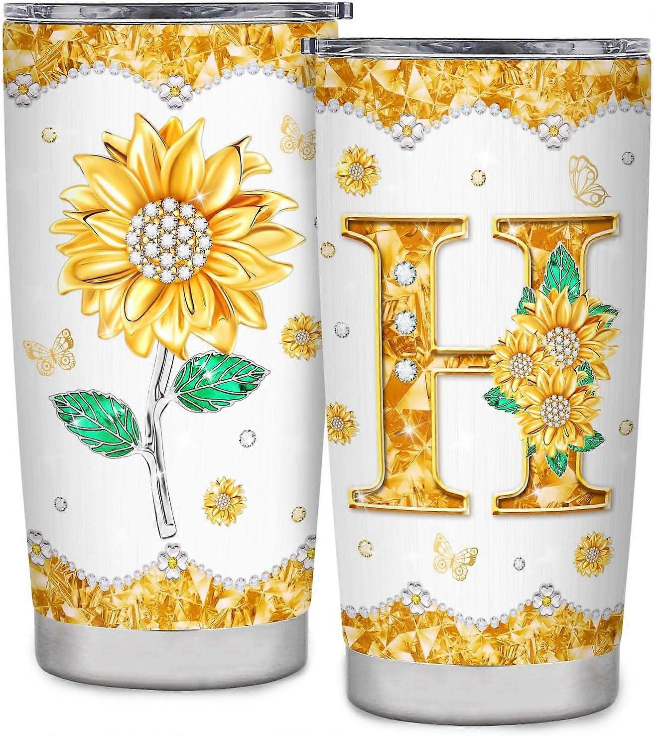 Initial H Tumbler Mug Gifts,Monogrammed Sunflower Gifts for Women,Personalized Gifts,Personalized Tumbler Cup for Wedding Birthday Graduation Party,Un
