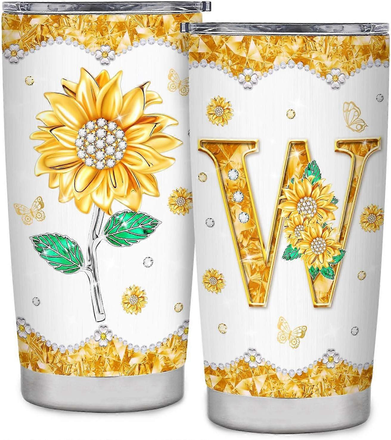 Initial W Tumbler Mug Gifts,Monogrammed Sunflower Gifts for Women,Personalized Gifts,Personalized Tumbler Cup for Wedding Birthday Graduation Party,Un