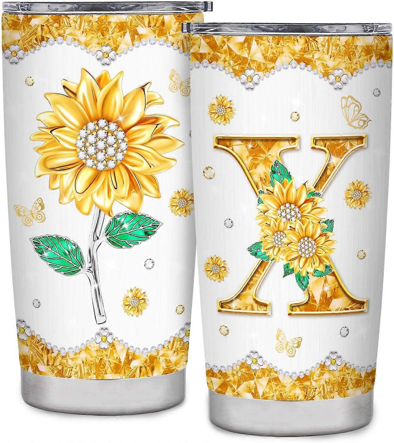 Initial X Tumbler Mug Gifts,Monogrammed Sunflower Gifts for Women,Personalized Gifts,Personalized Tumbler Cup for Wedding Birthday Graduation Party,Un
