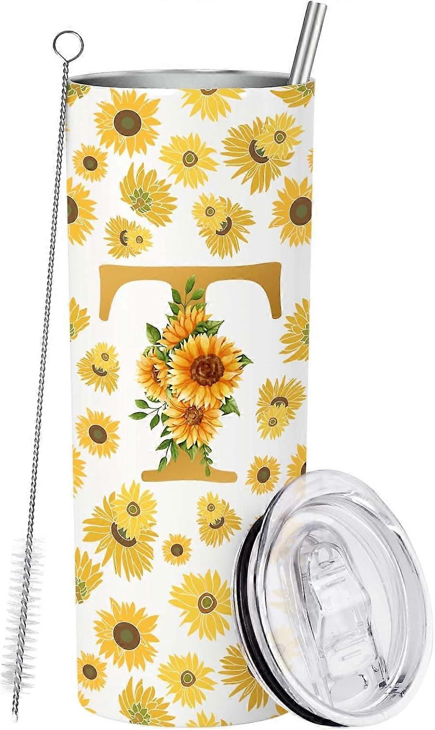 Sunflower Gifts for Women, Initial T Stainless Steel Wine Tumbler, Monogrammed Gifts for Women, Personalized Gifts for Women, Perfect Gifts for Women