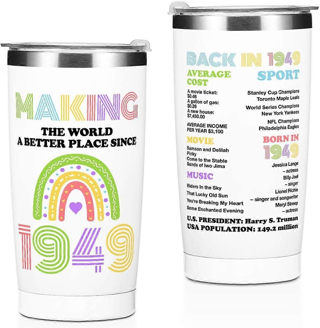 75th Birthday Gifts for Women, Tumbler 20 oz Stainless Steel Vacuum Insulated Tumblers, 1949 Birthday Gifts for Women, 75 Year Old Birthday Gifts, 75t