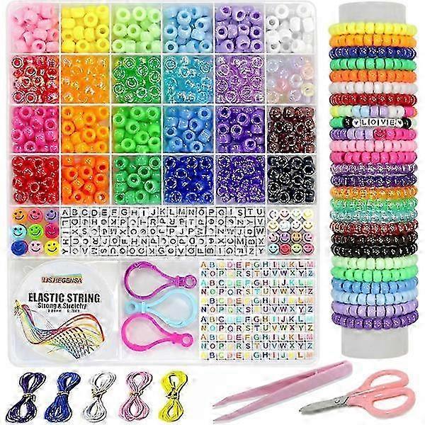 DIY Craft Gifts for Girls Bead Set, 1100 pcs Pony Beads Bracelet Making Kits with Decorative Beads and Charms