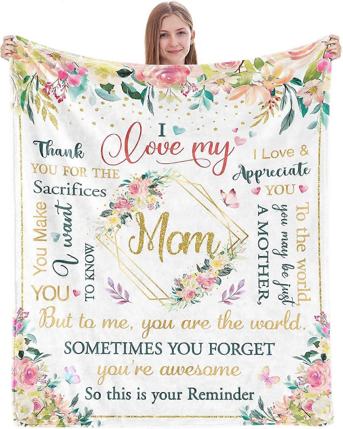 Gift for Mom, I Love You Mom Blanket 60 x 50in, Mom Birthday Gifts, Mom Gifts from Daughter Son, Christmas Birthday Gifts for Mom, Mom Presents for Ch