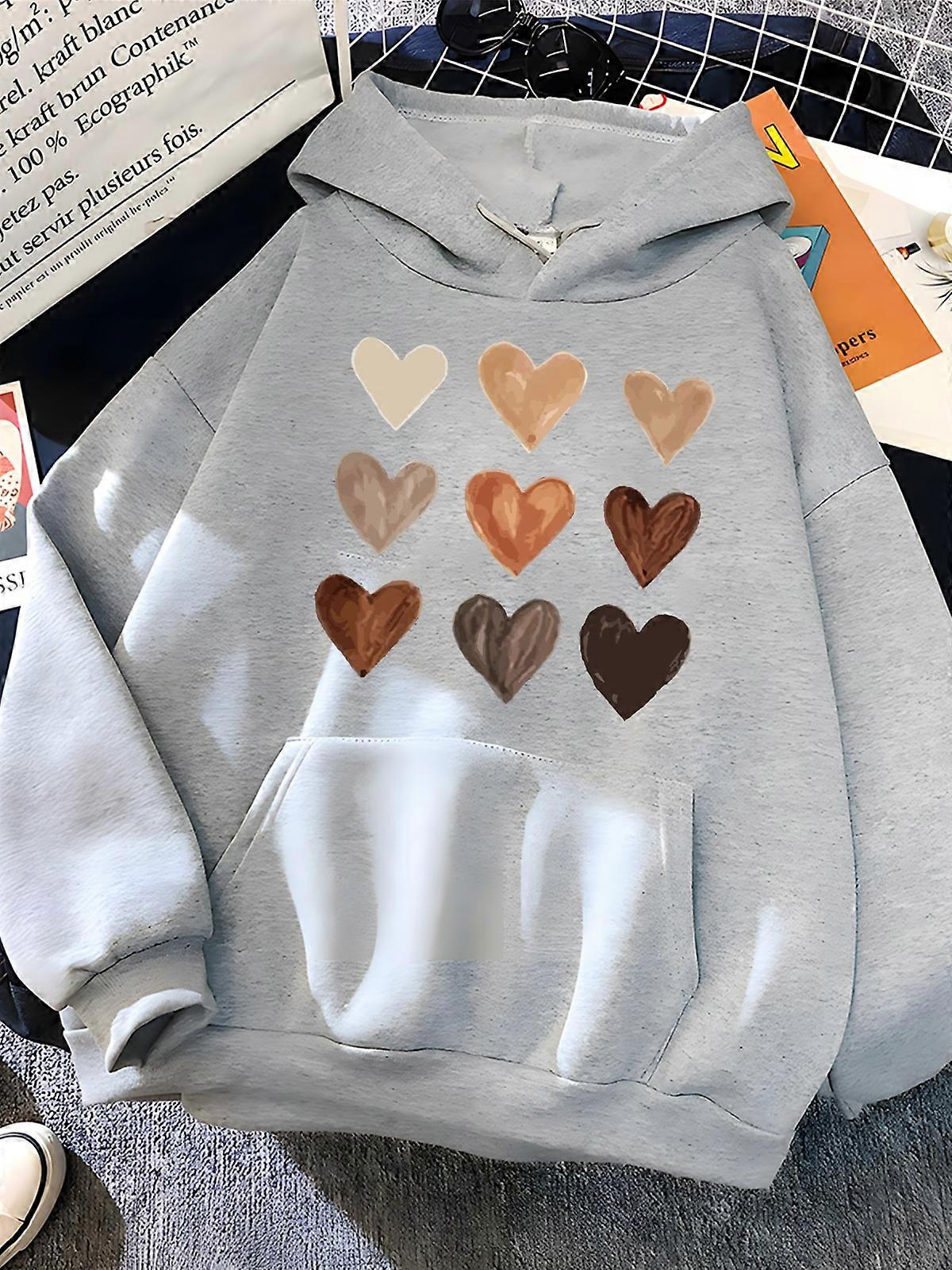 Hirsionsan Harajuku Heart Print Sweatshirt for Women 2023 New Winter Soft Casual Loose Warm Female Hoodies Fleece Ladies Clothes