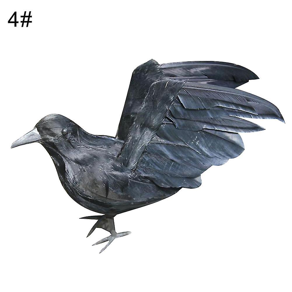 Realistic Feathered Crows Raven Model Halloween Prop Home Garden Yard Decor T