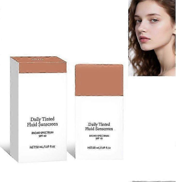 Daily Tinted Fluid Sunscreen, 3 Shades Face Moisturizing Broad Spectrum SPF 40 Skincare Foundation Cream, Lightweight & Natural Finish, 50ml