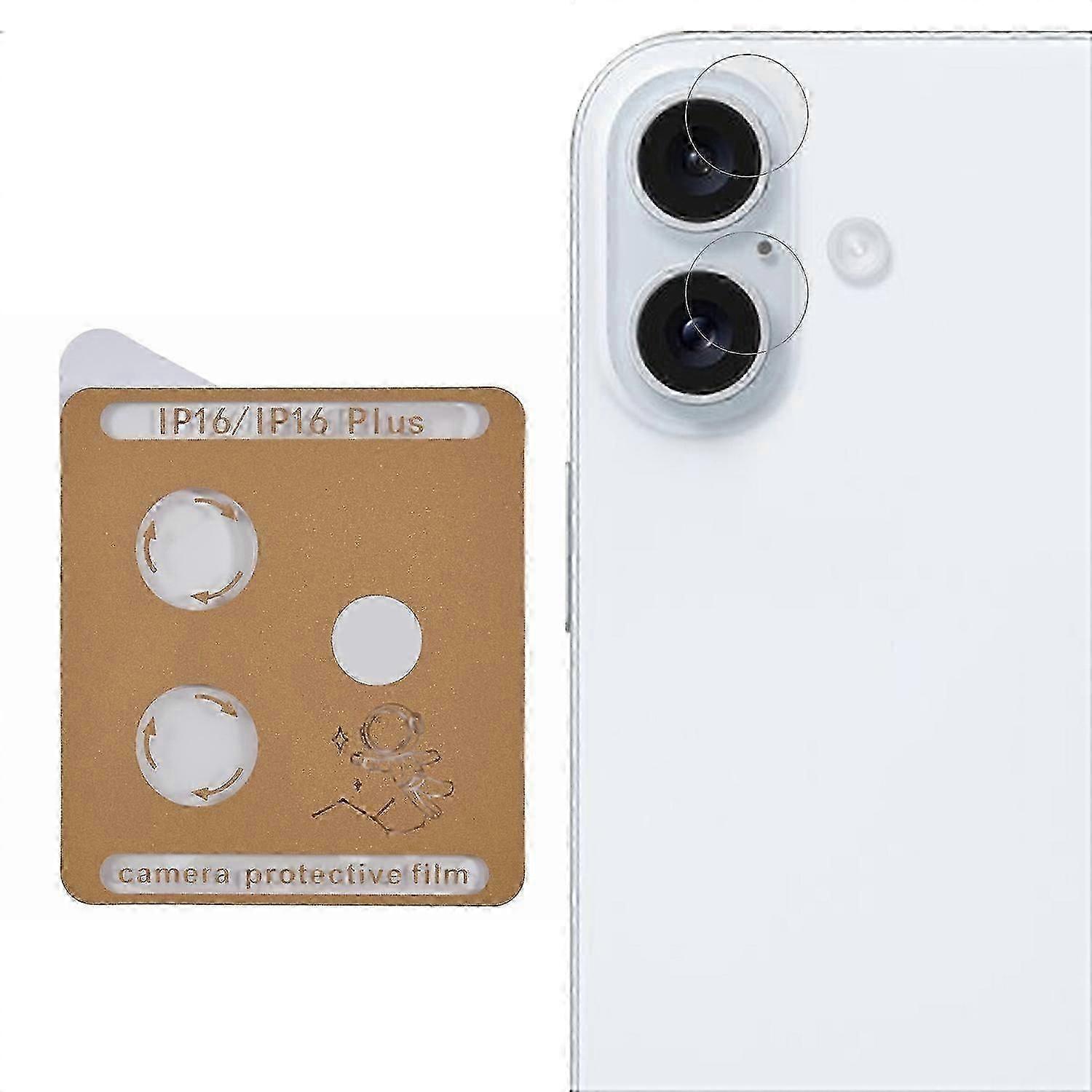 For iPhone 16 or 16 Plus Camera Lens Protector Tempered Glass Lens Film Precise Positioning Easy InstallationQuick Alignment Design Features an easy-to-use alignment tool for precise and hassle-free application,ensuring a perfect fit on your camera lensHigh-Definition Clarity Made from ultra-clear tempered glass,maintaining the original image quality and vibrant colors of your photos and videosScratch-Resistant Protection Provides robust protection against scratches,dust,and everyday wear to keep your camera lens pristineBubble-Free Installation Designed with a self-adhesive layer for bubble-free application,creating a smooth and seamless finishCase-Friendly Compatibility Thin and precise design ensures compatibility with most phone cases without causing interferencePackage included:1 x Tempered Glass Camera Lens Protector1 x Self-Positioning FrameAccessories only, phone not included