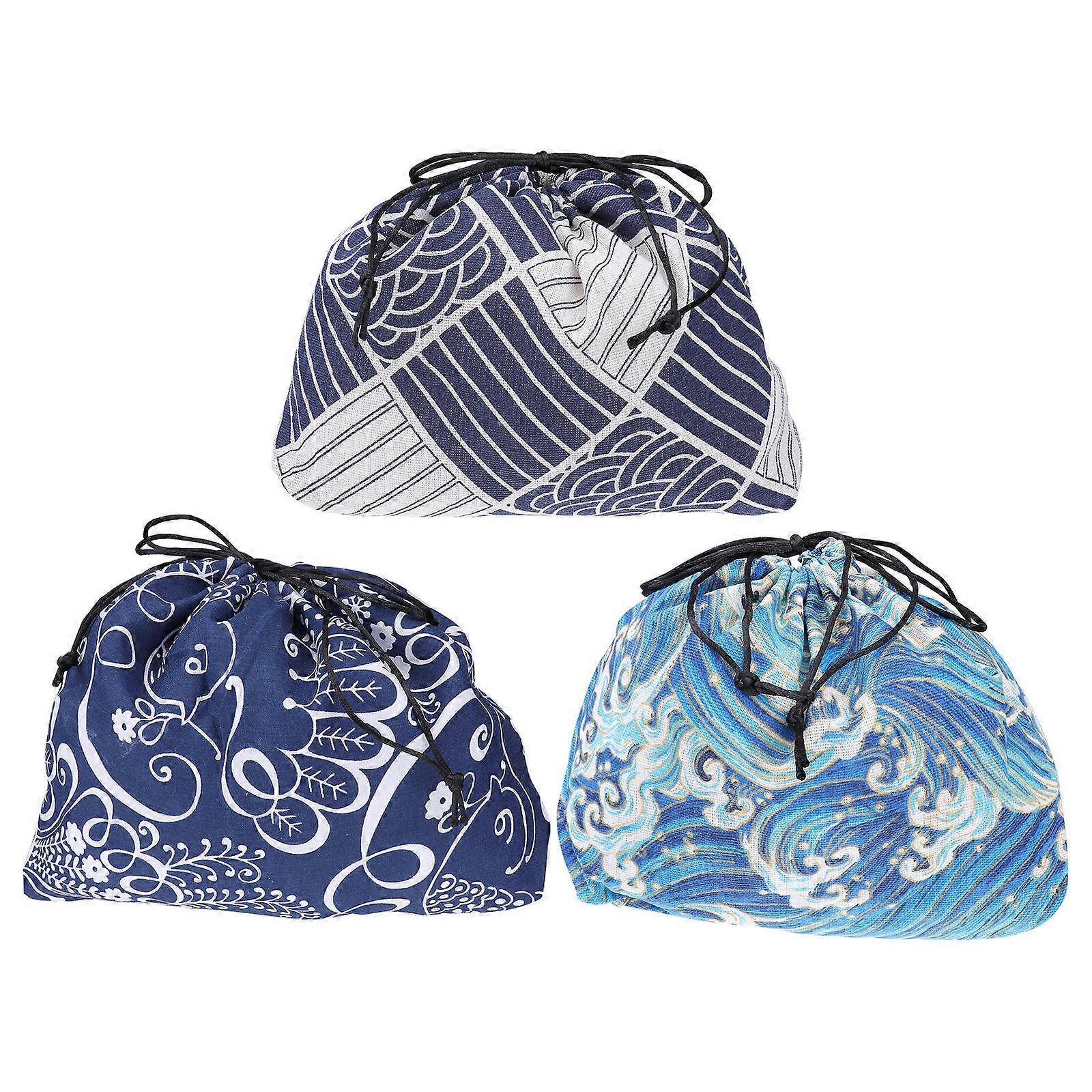 Washable Lunch Tote Bag Meal Carrying Portable Rectangular Cotton 3Pcs for Outdoor Use