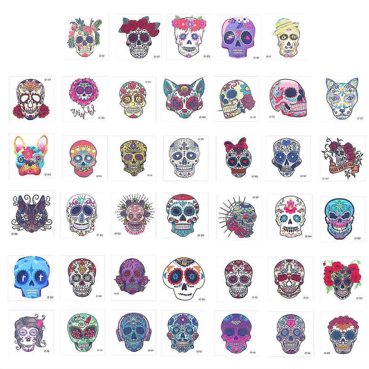 Sticker Faces For Crafts Halloween Temporary Face Waterproof Skull Body Sticker Assorted Color 6x6cm Safe for Skin 40Pcs