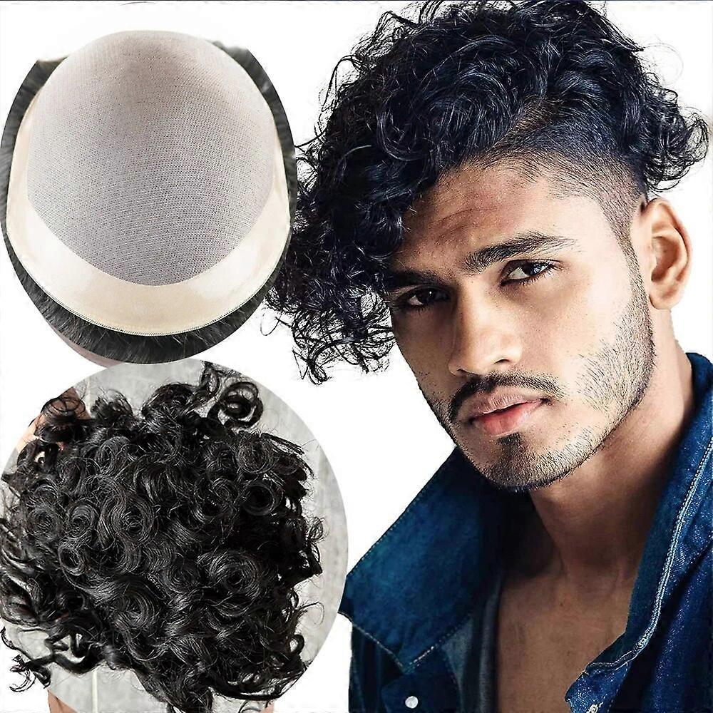Mens Curly Hair Unit 100% Human Hair 20mm Curly Mens Hair System For Men Fine Mono With 1" Pu Coated Perimeter Toupee