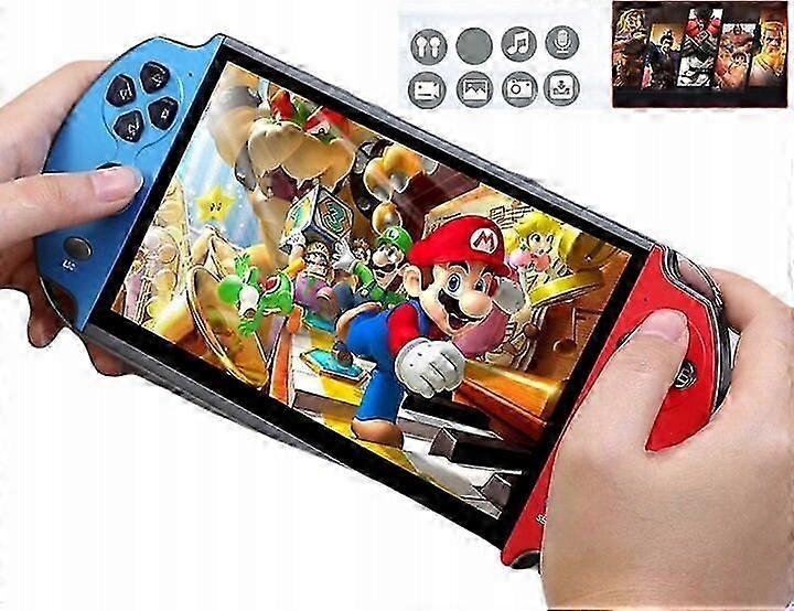 1. The portable multi-functional game console is a great gift for both adults and children! It can bring endless fun and entertainment. It is easy to use, and even the youngest children can operate it effortlessly. 2. You can play up to 1000 games! This game console comes pre - installed with up to 1000 games, including multiple versions of the classic Mario games. You can also load other games by yourself. 3. Play music and movies This game console can also be used to play music and movies. Thanks to the built - in 8GB memory and support for micro SD cards, you can load your favorite movies or music - the set includes headphones. 4. Say goodbye to boredom on the journey This game console offers a rich selection of games and the ability to play movies and music, keeping your children entertained during the journey. You no longer have to worry about what to do with your children while driving. You can upload your favorite cartoons or songs, and children can watch them without using their mobile phones! 5. Compact size The console has an ergonomic design that fits perfectly in the hands of children. It is lightweight and compact, so it won't cause fatigue to the user. If necessary, it can be put in your pocket. 6. Gaming isn't limited to the small screen Do you want to play games on a big screen? No problem - connect the console to the TV! (Change the TV output from "Off" to "PAL" in the settings). With this function, you can also play the movies on the console on the big screen! 7. Practical for daily use The console also has a built - in text file editor, e - books, a clock, a calendar, and a stopwatch. 8. Specifications Features: The ability to play games - over 1000 pre - installed games, the ability to load your own games, the ability to play movies and music at 1080x720P, the ability to connect the console to the TV, a text file editor and e - books, a clock, a calendar, a stopwatch. Big screen - 5.1 inches, 64 - bit. Built - in 1700 mAh high - capacity battery, providing up to 5 hours of operation time. 8GB memory. Supports micro SD cards up to 32GB. Fast USB 2.0 port. The ability to connect to the TV via an AV cable. The ability to connect the console to a computer via a USB cable - it will be detected as a portable disk, and you can download movies or music to it. The ability to manage files and directories without connecting the device to a computer. Keyboard lock. Battery status monitoring indicator. Installed drivers. Files protected by the data encryption function. Sleep function. The ability to change the wallpaper. Dimensions: 19.2 x 8.2 x 1.8 cm. Color: Red - blue. 9. Supported formats Audio formats: MP3, WMA, OGG, WAV, AAC, APE. Video formats: RM, RMVB, AVI, MP4, 3GP. Supports C, GB, GBA, GBC, MD, NES, SFC, PS, arcade games, 8 - bit, 16 - bit, 32 - bit, 64 - bit, 128 - bit games. Console game formats: PEGASUS, SFC, NINTENDO ENTERTAINMENT SYSTEM, GAME BOY ADVANCE, GAME BOY COLOR. 10. The set includes X12 console USB cable AV cable Headphones User manual 11. Do not format the battery. To configure the battery correctly, discharge it, then fully charge it and repeat this process. This will give you up to 8 hours of music listening or 4/6 hours of gaming or movie - watching time.