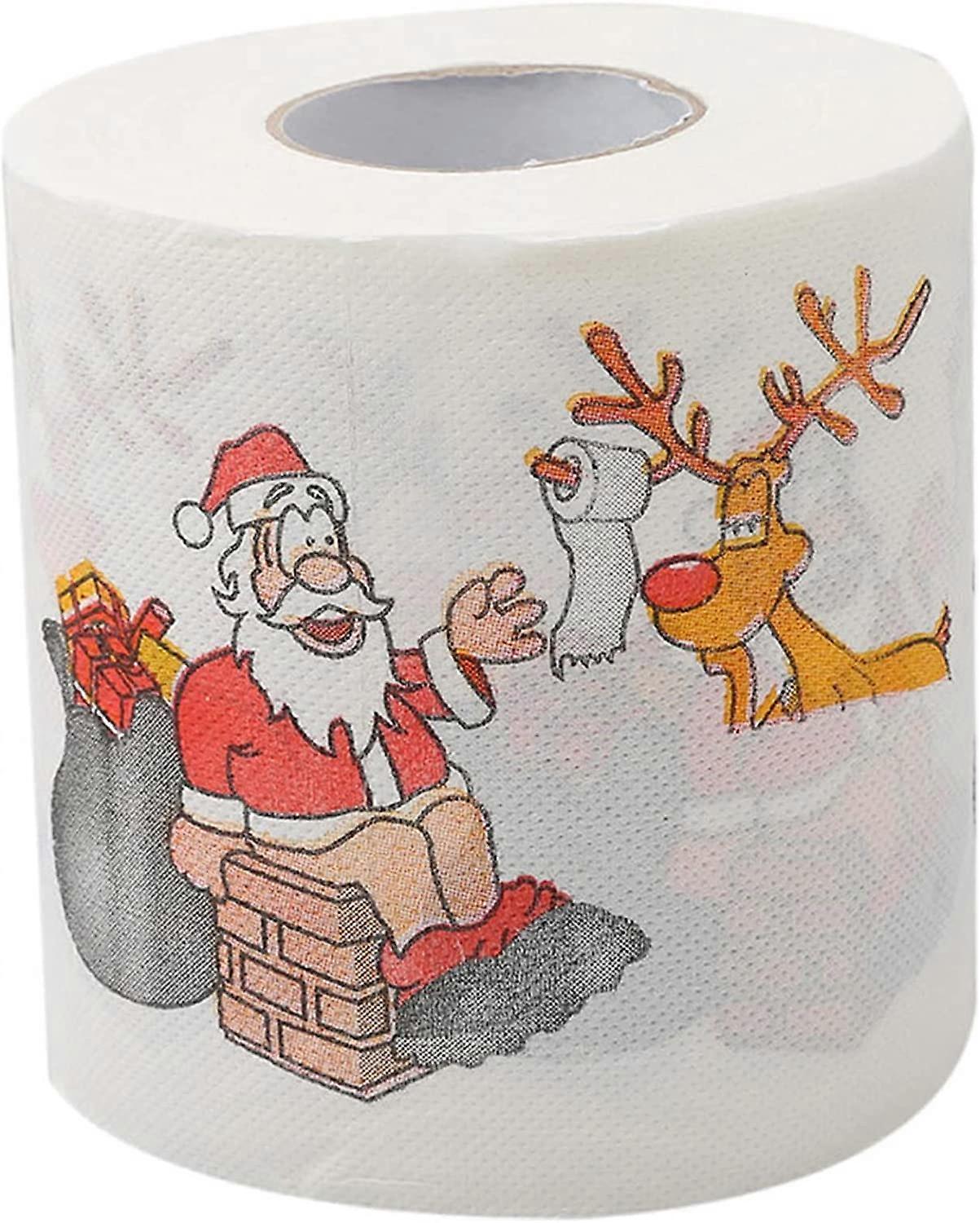 Colorful Christmas Toilet Paper Santa Claus Reindeer Pattern Toilet Roll For Bathroom Kitchen Holiday Decoration (D-F-4)