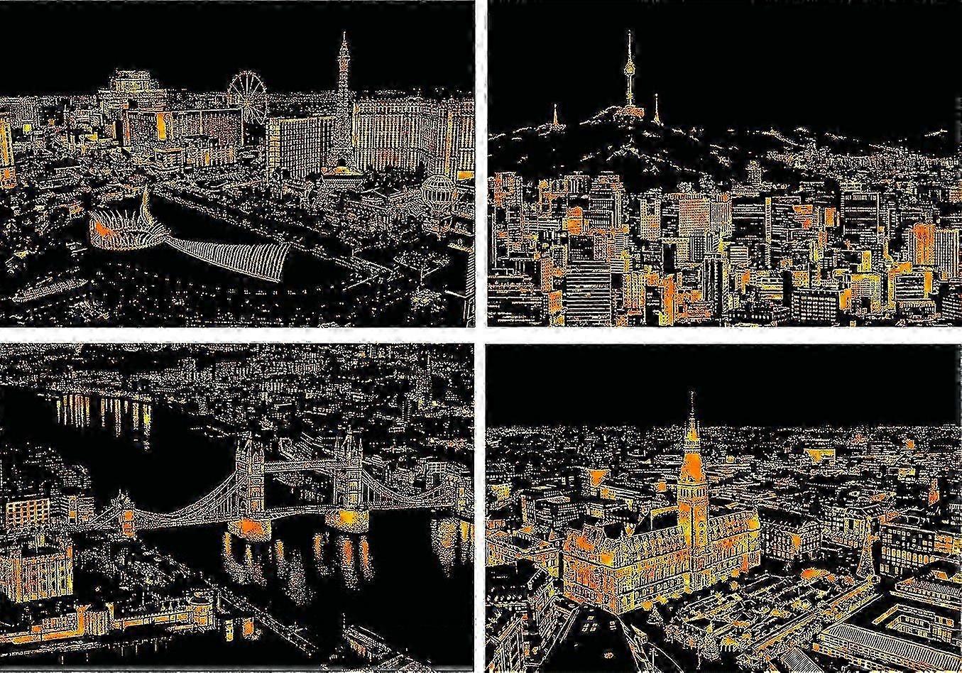 Scratch Paper Rainbow Painting Sketch Pads DIY Art Craft Night View 4 Packs