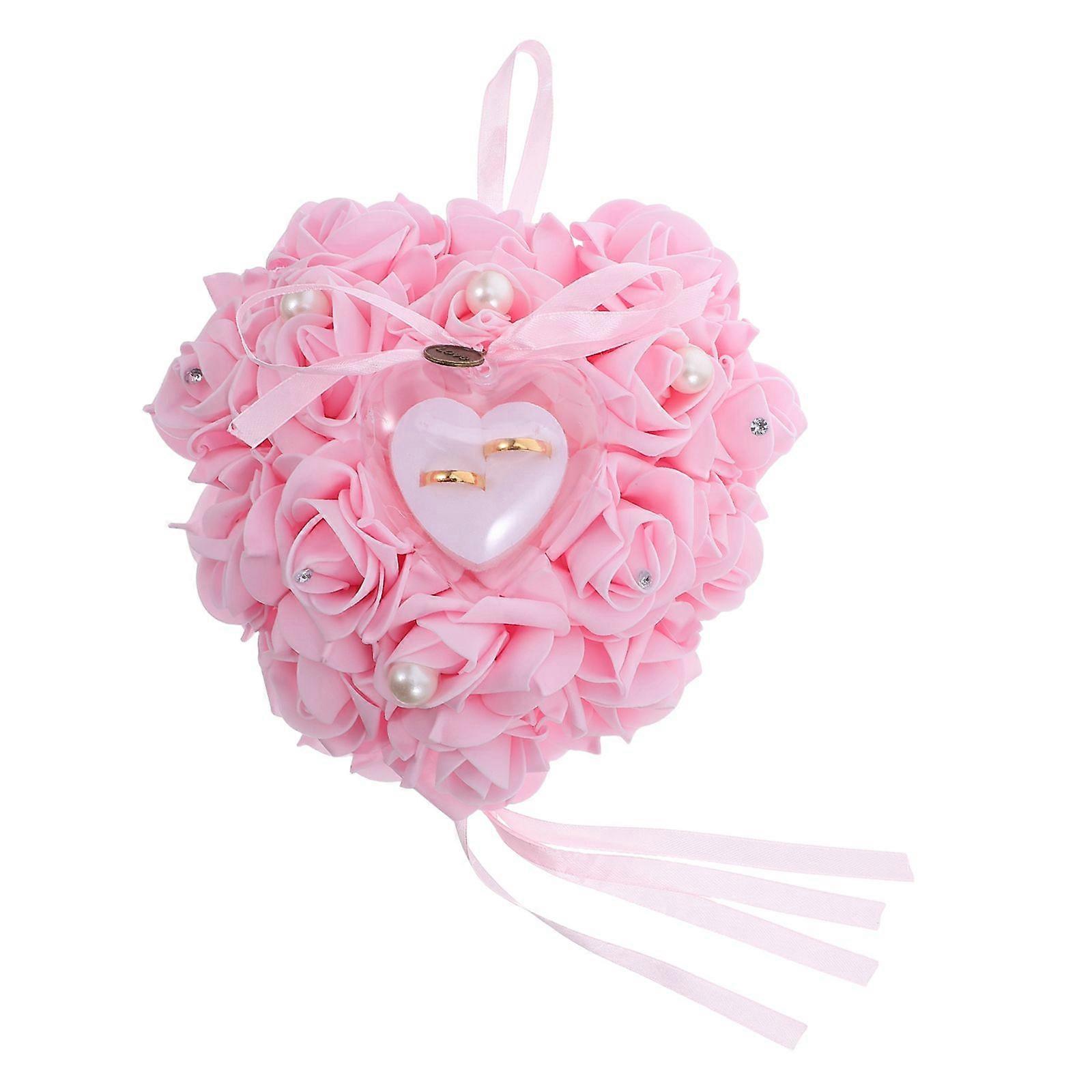 Wedding Ring Pillow: Romantic Heart-Shaped Ring Pillow With Simulated Rose - Flower Girl Proposal Box For Engagements And Proposals Ceremonies