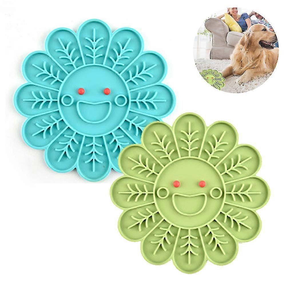 Dog Licking Pad - Slow Feeder Mat for Anxiety Relief (Blue & Green, 2pcs)