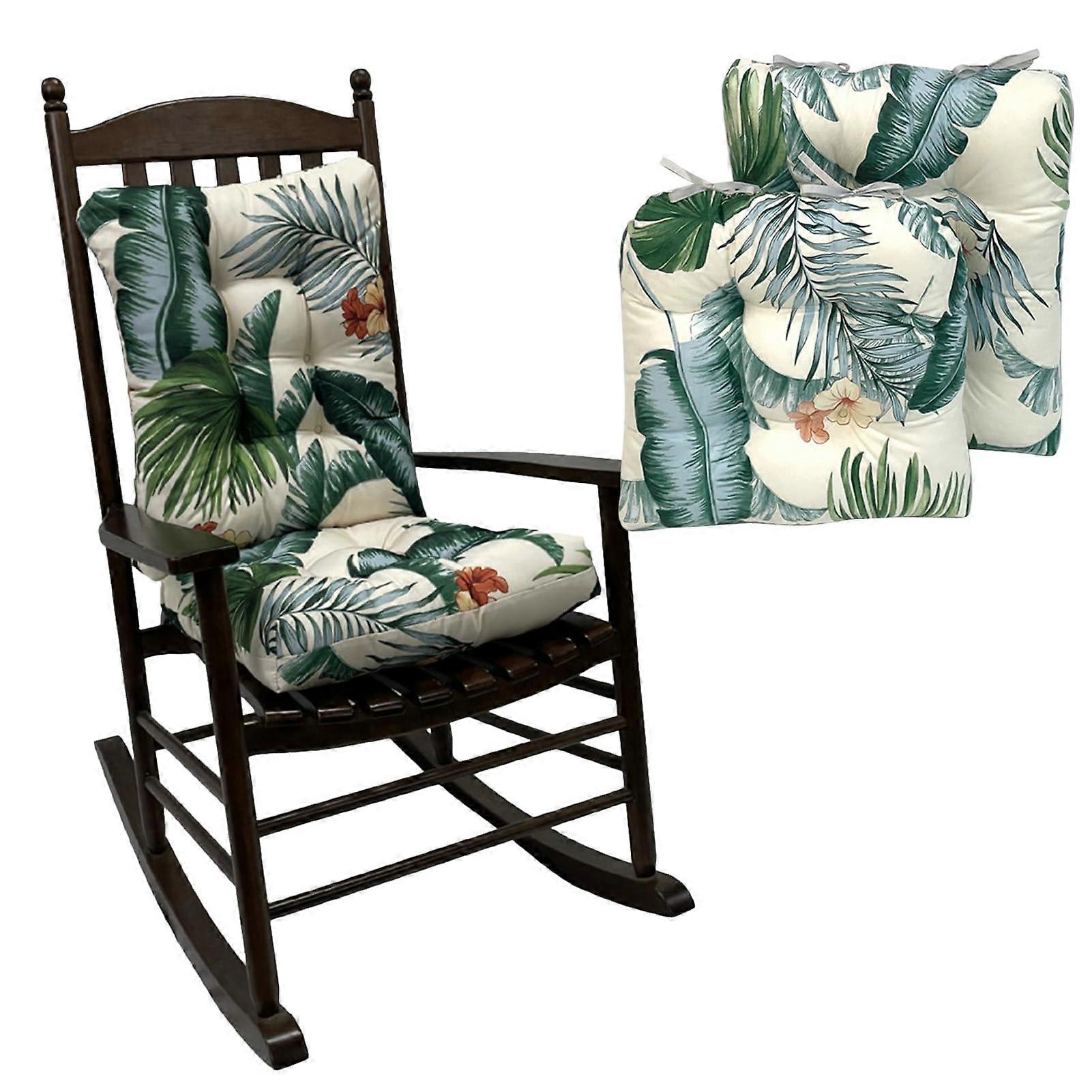 Waterproof Back Garden Rocking Chair Cushions, 2Pack, 17x17in, 8 Cm Thick Padding, Ties, For Rattan Chairs Green