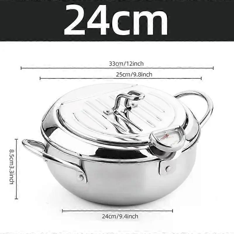 Kitchen Deep Frying Pot with Thermometer and Lid Stainless Steel Pans Japanese Tempura Fryer Pan Fried Chicken Pot Cooking Tools
