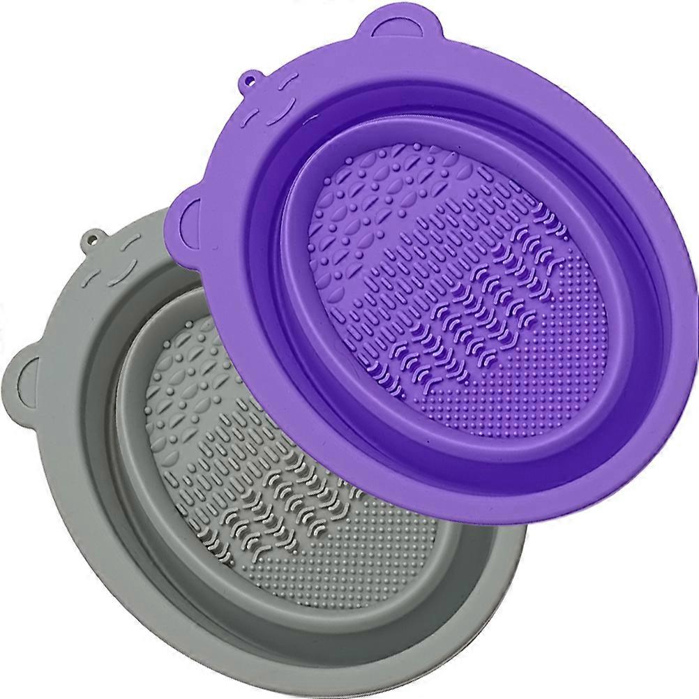 Portable Makeup Brush Cleaning Bowl For Women And Girls Home Use Versatile Foldable Design 14X11Cm 2Pcs