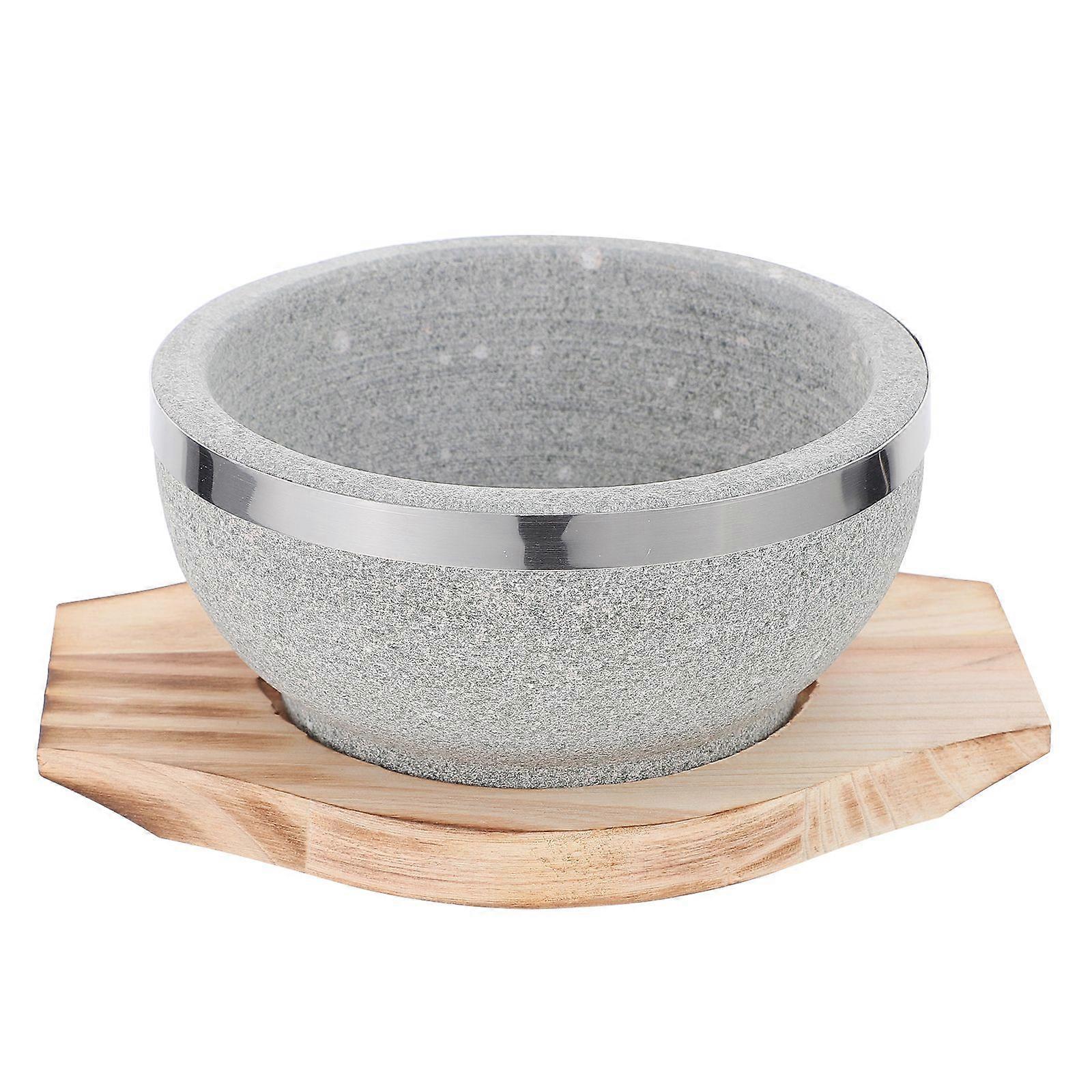 Household Bibimbap Stone Bowl and Wood Tray Set for Korean Soup and Food