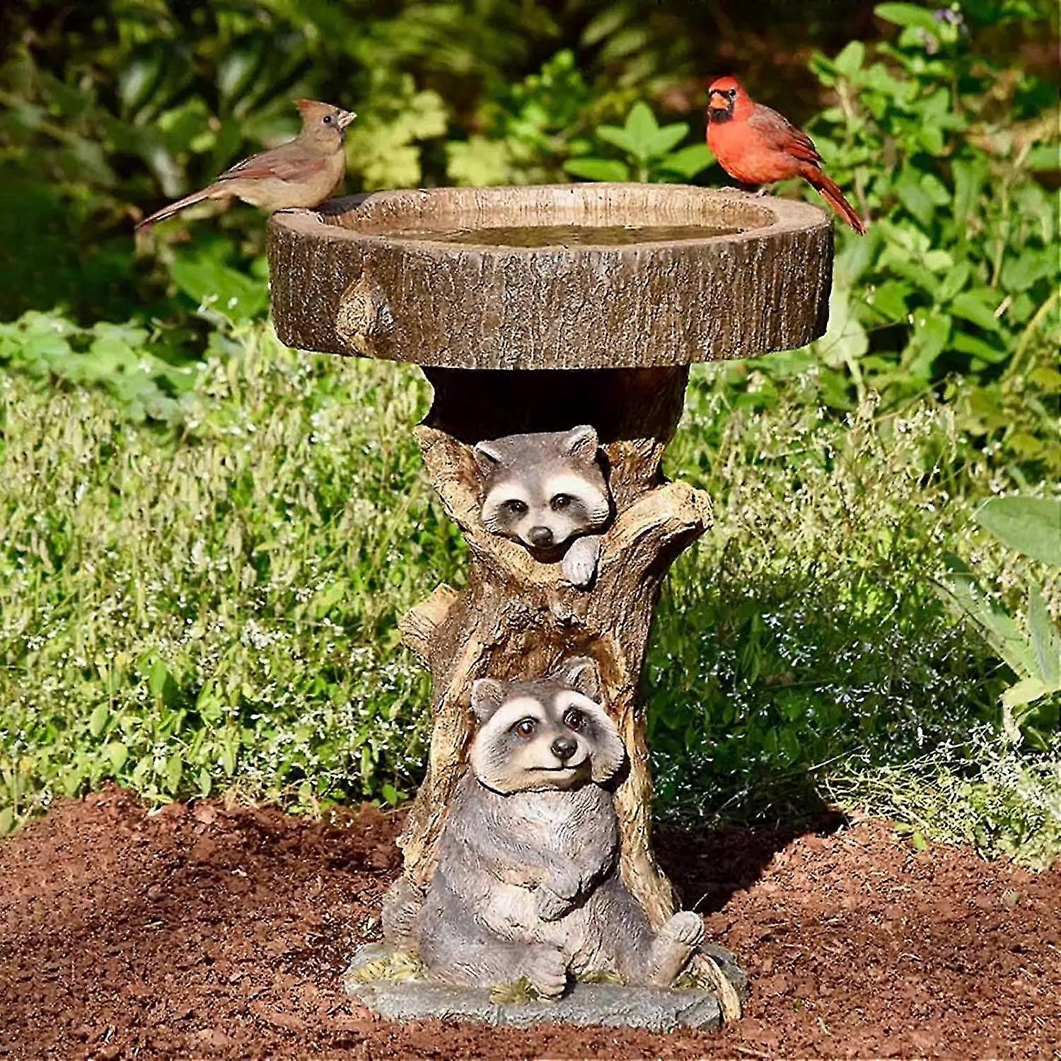 Outdoor Bird Bath Bowl, Resin Pedestal Fountain Decoration For Yard, Garden W/Planter Base, Feeder, Wonderful Outside Decor, Best Choice Gift (Raccoon