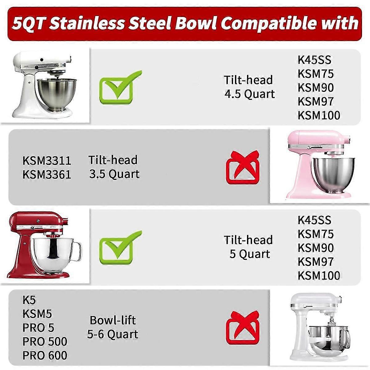 Stainless Steel Mixer Bowl 5qt Compatible With For Tilt- Stand Mixers 4.5-5 Quart, 5 Quart Mixing Bowl