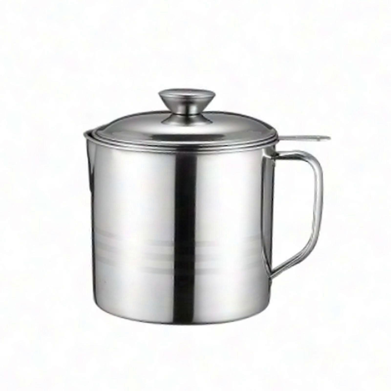 Stainless Steel Oil Filter Pot 1.8L with Lid & Handle - Food Grade Fine Mesh Grease Strainer for Kitchen Storage