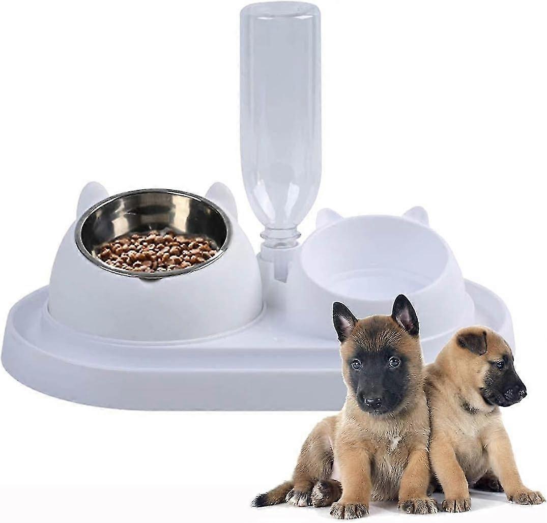 Double raised cat bowl, 15 degree tilt anti-vomiting non-slip bowl automatic water storage pet bowl