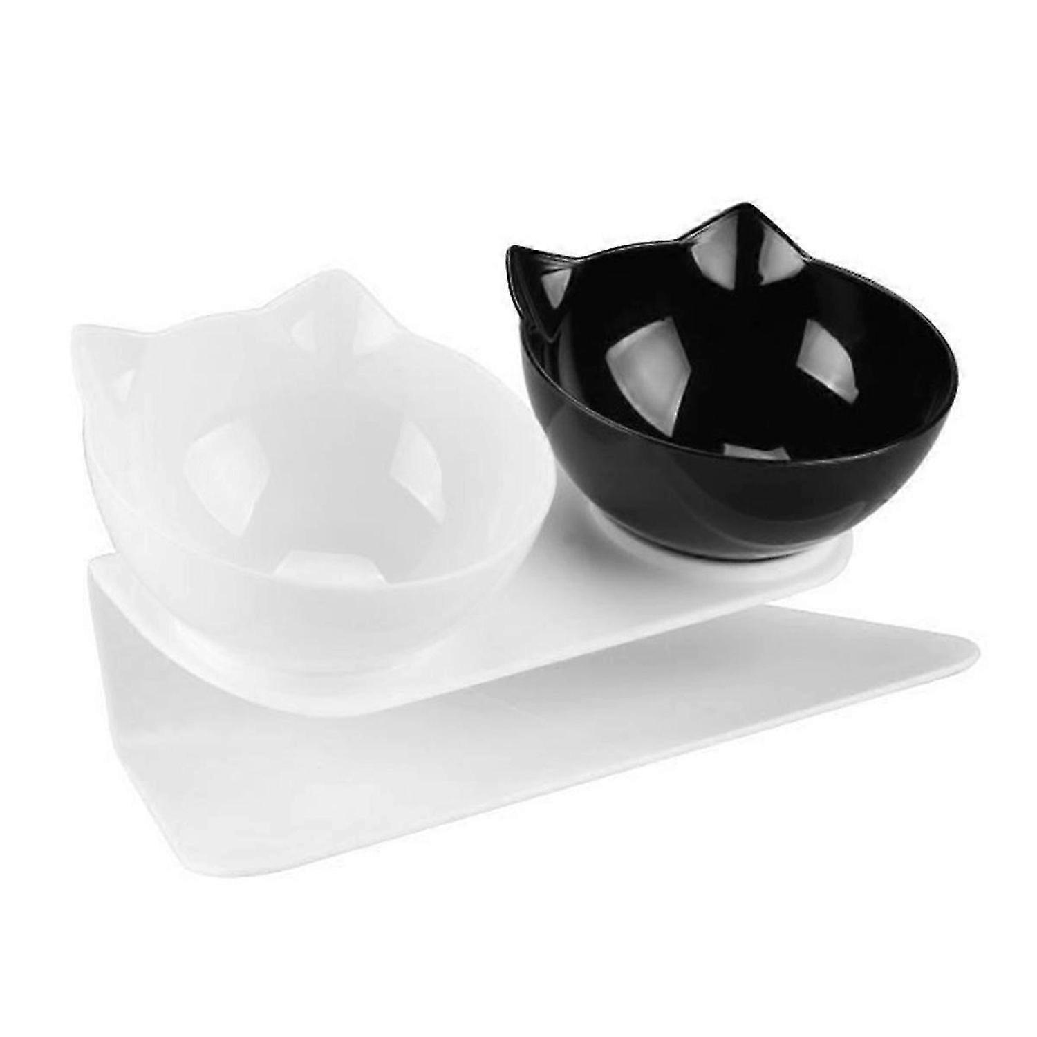 Anti-Slip Double Layer Cat Bowl And Dog Bowl With Stand Black & White