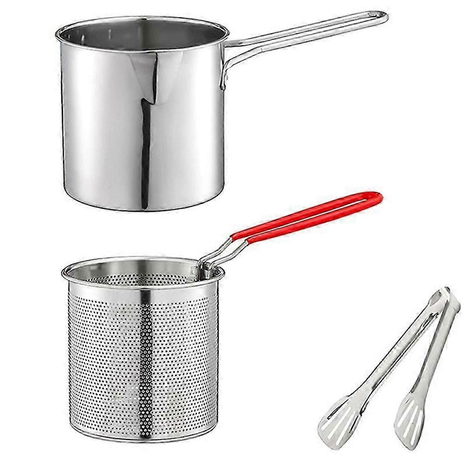 Deep Frying Pot with Strainer Basket Tong Stainless Steel Japanese Tempura Frying Pot for French Fri