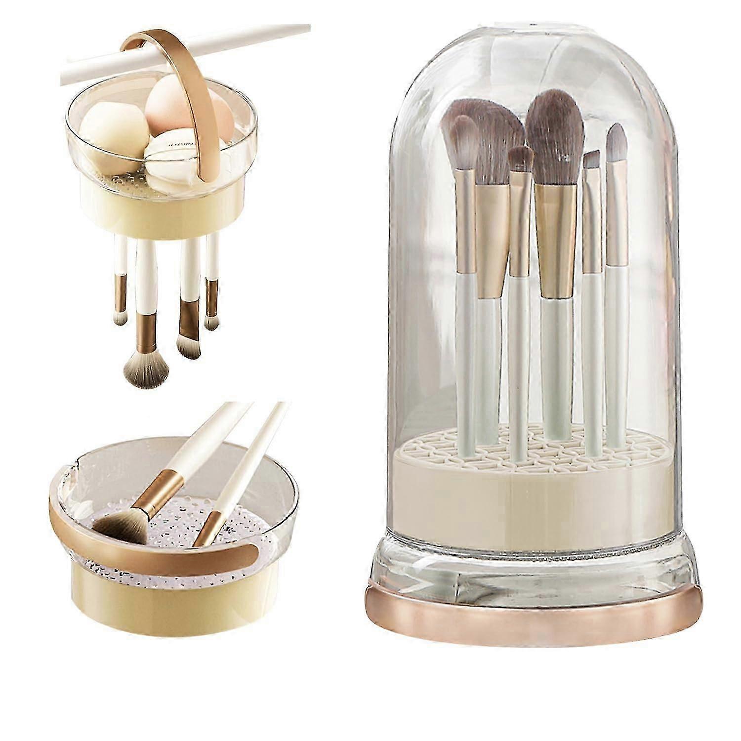Makeup Brush Cleaner Bowl, 3 in 1 Makeup Brush Cleaner Mat & Brush Drying Holder, Dustproof Makeup Brush Organizer with Lid