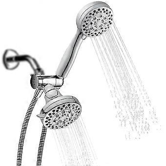 Handheld Shower Head Rain Showerhead Combo 5 Spray Settings High Pressure Shower Head With 3-way Water Diverter Stainless Steel Hose Set Polished