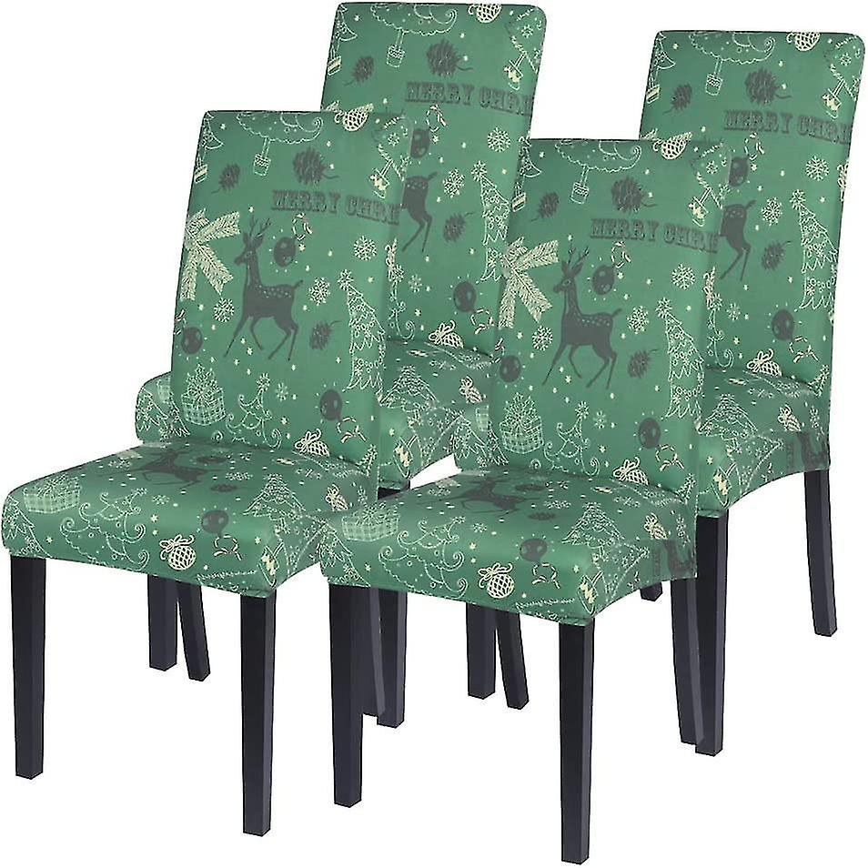 Christmas Dining Room Chair Covers Set Of 4, Stretch Xmas Chair Slipcovers Protector, Spandex