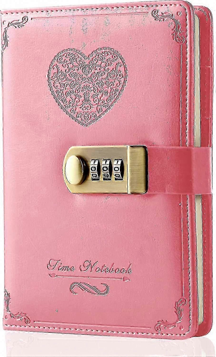 Cute Leather Password Lock Diary for Girls and Women - Combination Lock Secret Journal Notebook, B6 Size 5.3x7.8 Inch