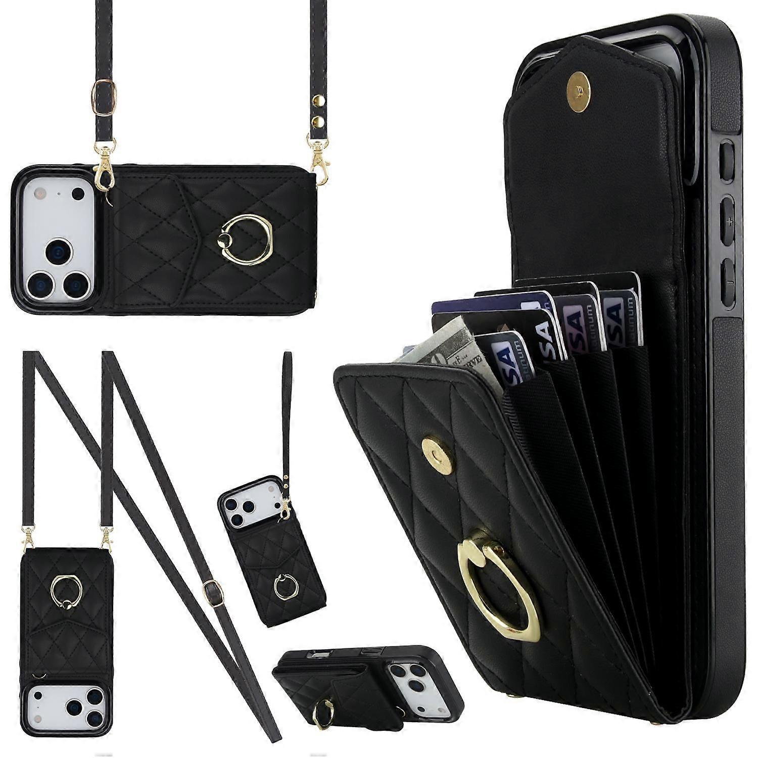 Für Apple iPhone 17 Pro Max Crossbody Kunstleder Rhombic Hülle Schwarz
