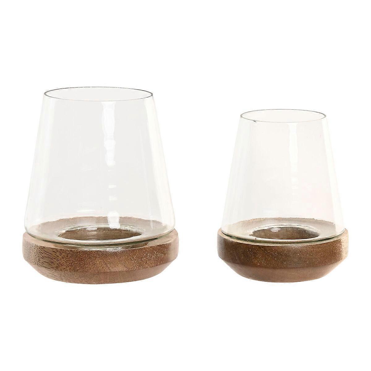 Kerzenschale Home ESPRIT Braun natürlich Kristall Mango-Holz 12 x 12 x 15 cm (2 Stück)