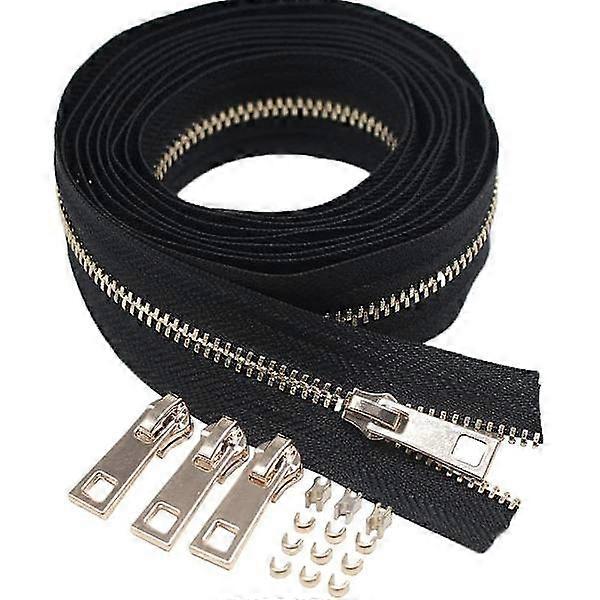 #3 Gold Metal Zipper Per Meter Bulk 5 Meters + 10pcs Zippers For Sewing, Bags, Handbags, Wallets, Purses, Crafts, Decoration (Gold 5 Meters)