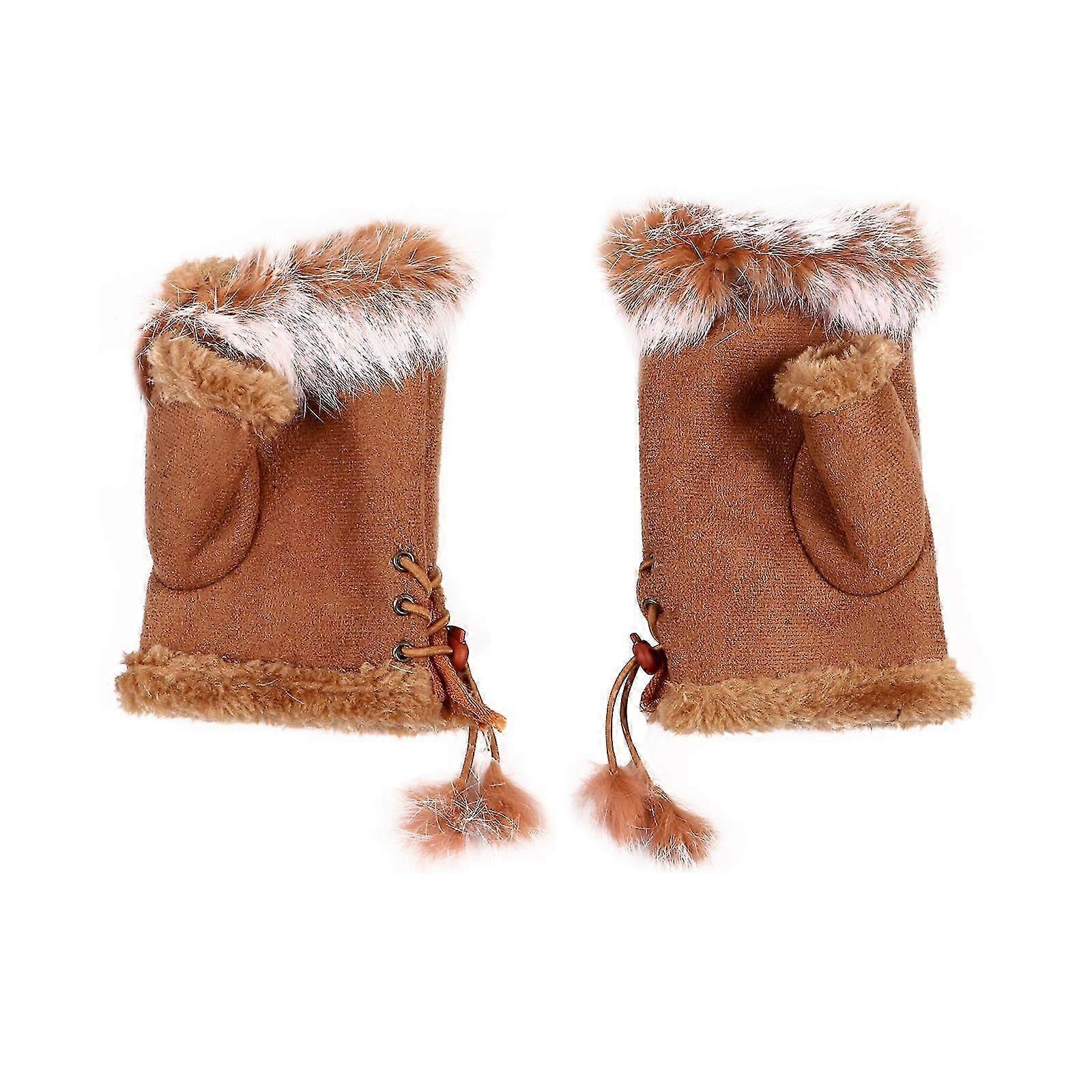 1 Pair Warm Rabbit Fur Half Finger Gloves Fingerless Gloves Mittens for Winter