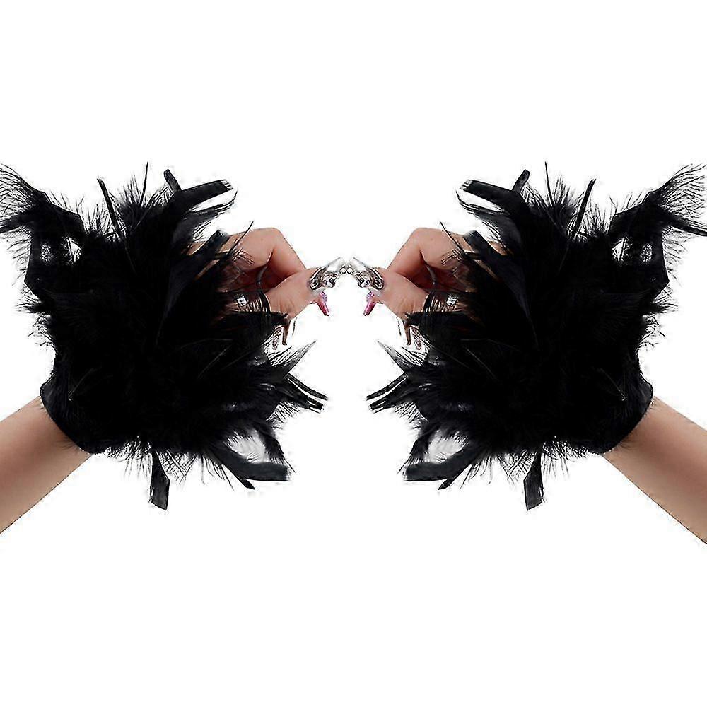 1 Pair Feather Bracelet Adjustable Ribbon Luxurious Layered Feathers Charm Ribbon Bangle Halloween Cosplay Parties Accessories