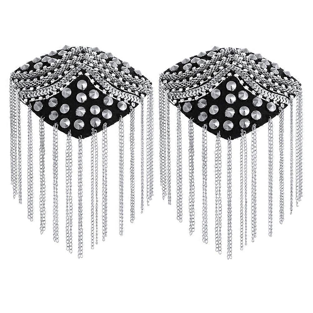 1 Pair Tassel Rivet Shoulder Board Cool Man Costume Shoulder Mark Fashionable Rivet Shoulder Board Silver