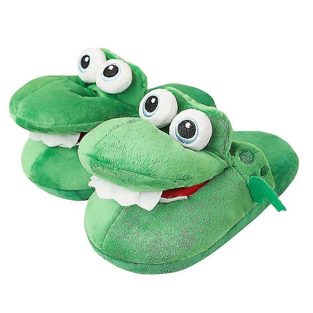 1pair Funny Crocodile Plush Slippers Lovely Cartoon Slippers Indoor Shoes Green