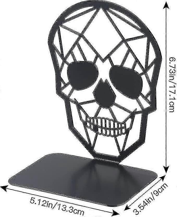 1 Pair Metal Skull Design Bookend Black Book Ends, Heavy-duty Bookends For Shelves, Black Skull Book